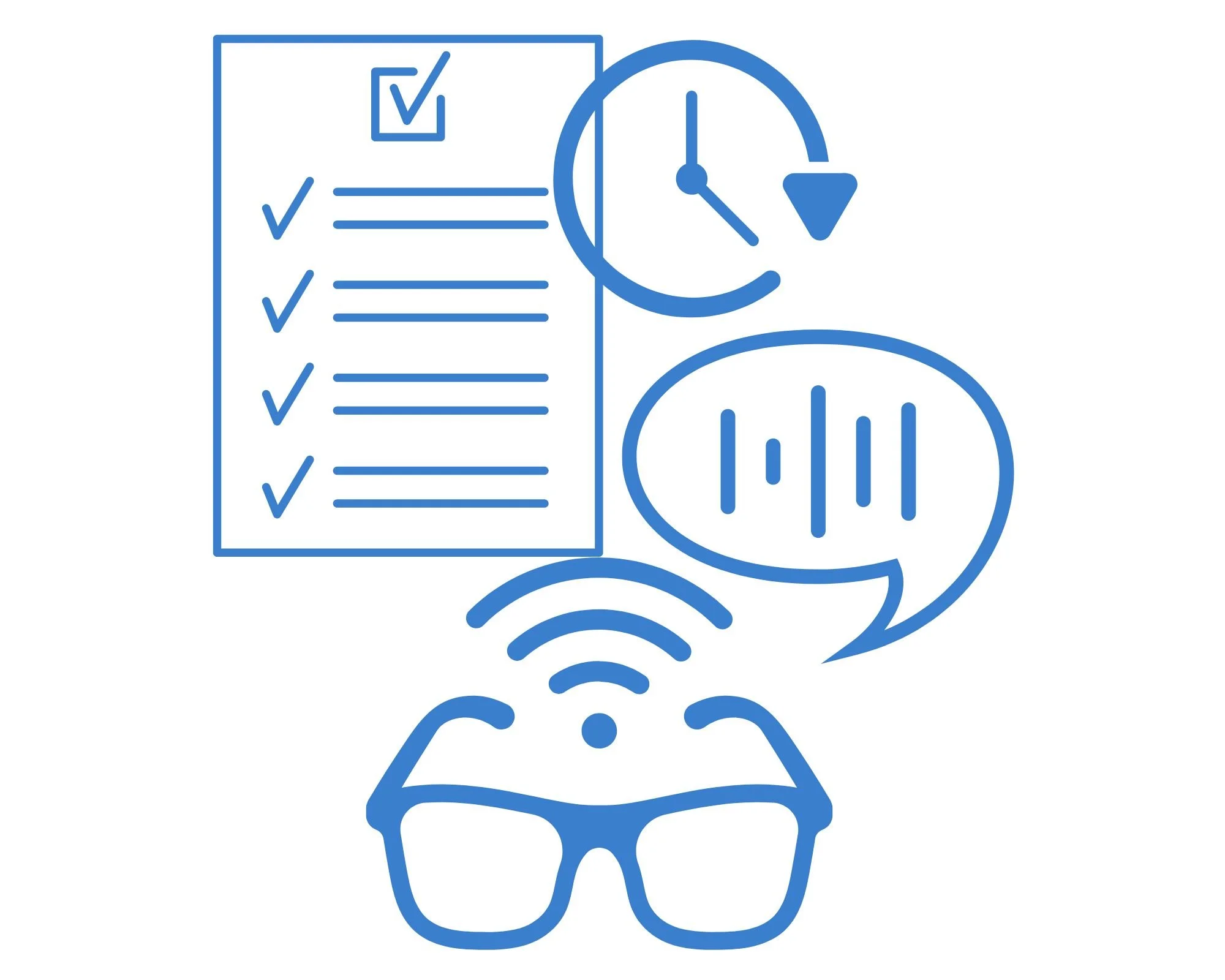 Use case: A QA officer conducts inbound goods inspections using voice-activated checklists displayed in the smart glasses, without needing a clipboard or tablet.